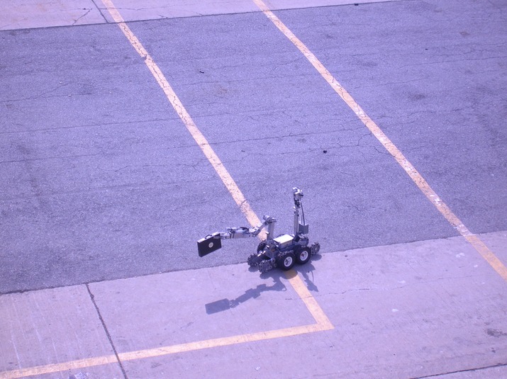 Robot moving the package to a safe location. Don't you wish you had a robot to carry your luggage?
