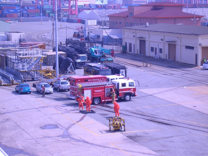 Decontaminating the HAZMAT team and the outside of the retrieval container.