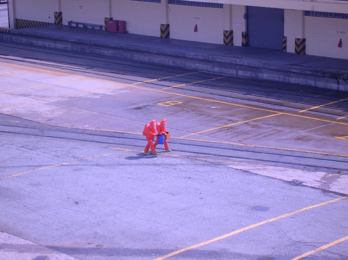 Moon suits and containers.