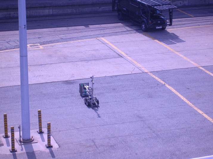 Placing the package in a "safe" container which I can only imagine would be a bomb "pot" in an actual event.