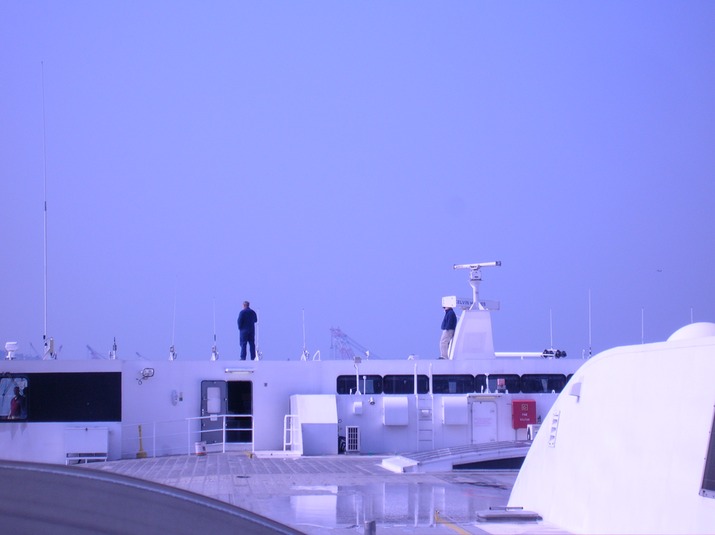 The first engineer, Graham and the chief engineer, Chuck waiting for the festivities to start.