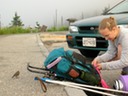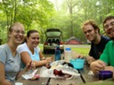 Becky, Becky Peter and I choose to backpack the smokey mountains for the hell of it. We met in PA at Becky's house, gathered food stuffs and what not. We managed to pack it all into Pete's Golf then on the road to TN. When we got there we did a few day hikes to warm up and then did our loop trip. The first day we hiked 11 miles (although some of us will later claim it was closer to 13 miles) and then we hiked six miles each of the additional days. We actually did the trip backwards from how it was recommended because I had said I wouldn't feel like hiking 11 miles the last day. The conclusion was that its not fun to hike that far ever.