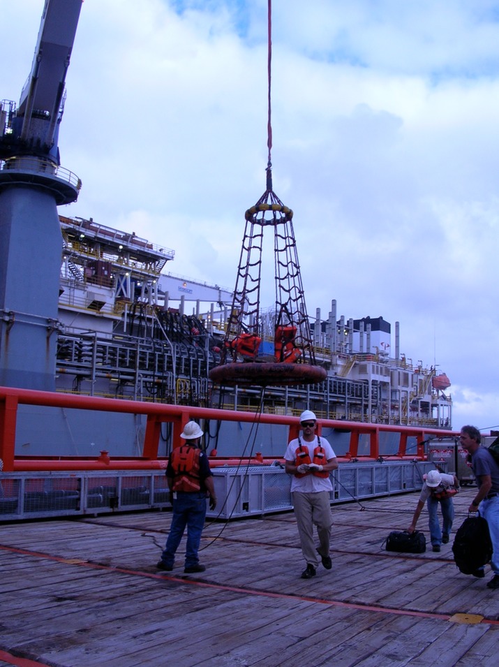 Stand on the red lifering thing. Hold onto the netting. Fairly straight forward and wicked fun.