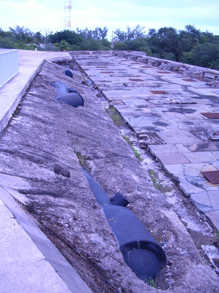 Yes, they used cannons to reinforce the wall. They're currently working on excavating them. This section of the wall is expected to collapse at some point due to soft foundation etc.