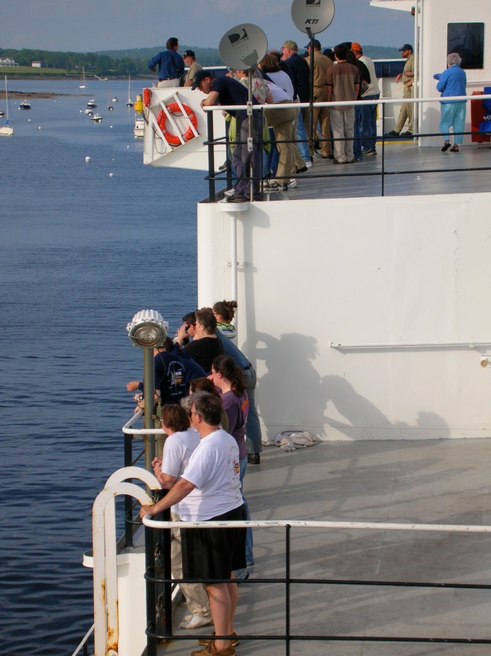 Coming back into Castine, everyone and their parents line the rails trying to spot friends and family ashore.