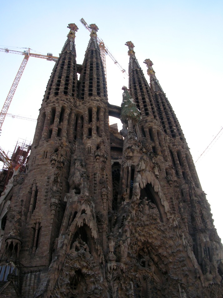 Cathedral designed by Antoni Gaudi in Barcelona. Started in 1882 its still under construction and will be for awhile. Gaudi is famous for his "organic" style to his architecture. His buildings resemble things that have grown from the ground to become the splendid pieces that they are. There will eventually be 18 towers the tallest at 170 metres (558 ft).