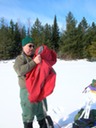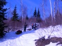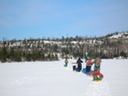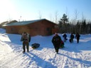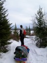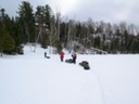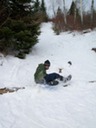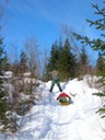 Sledding down the portage trail
