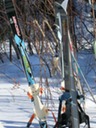 Grey jay admiring the skis