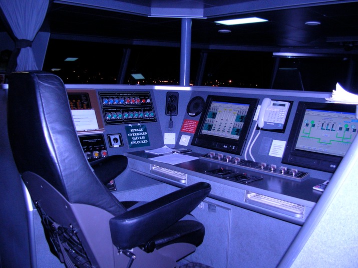 The left side contains the fire alarm system, emergency shut-downs, and CO2 release for the engine spaces. This system replaces the "control room" in most other vessels. Now the engineers can see where we're going... muwahahaha