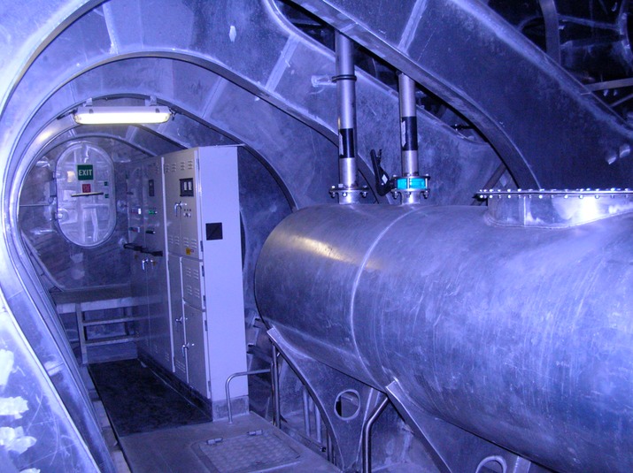This is the next space in the hull, the forward void. This room contains our bilge holding tank and the Oily Water Separator (OWS) and sludge tank are down stairs. These are only on the port side.