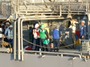 A bit of a better look at the UNREP station on the receiving ship. The wire the hose rides on is attached above the socket with a pelican or McCloney hook. The man in green is holding paddles that are used to communicate between the ships. Each color uniform indicates a different job.