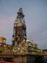 The drilling derek is the tower structure in the middle, the white dome there is either a satellite or radar. The building structure under it the bridge and crew quarters.
